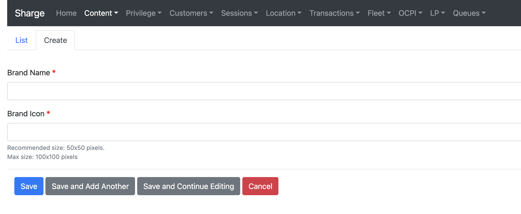 - CMS > Content > Car Brand > Create