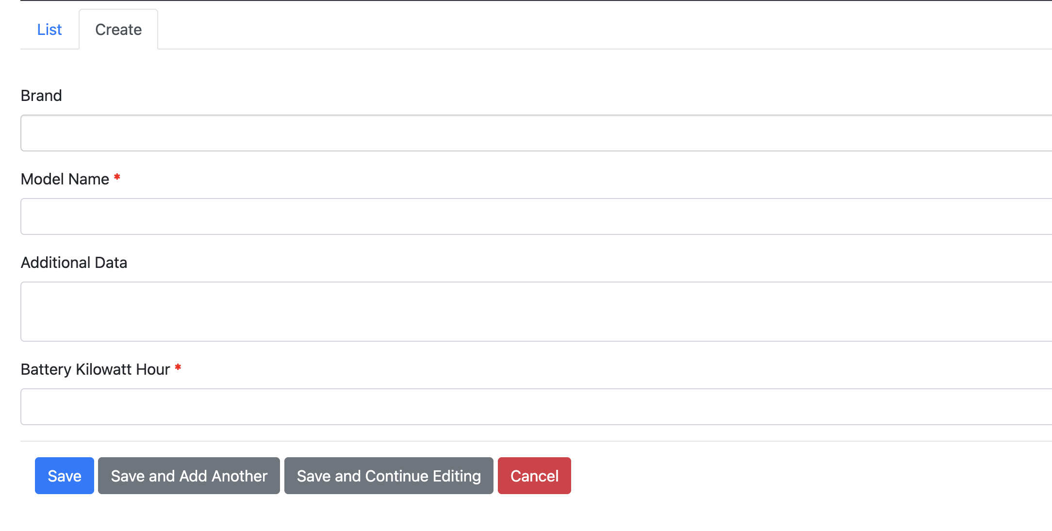 - CMS > Content > Car Model > Create