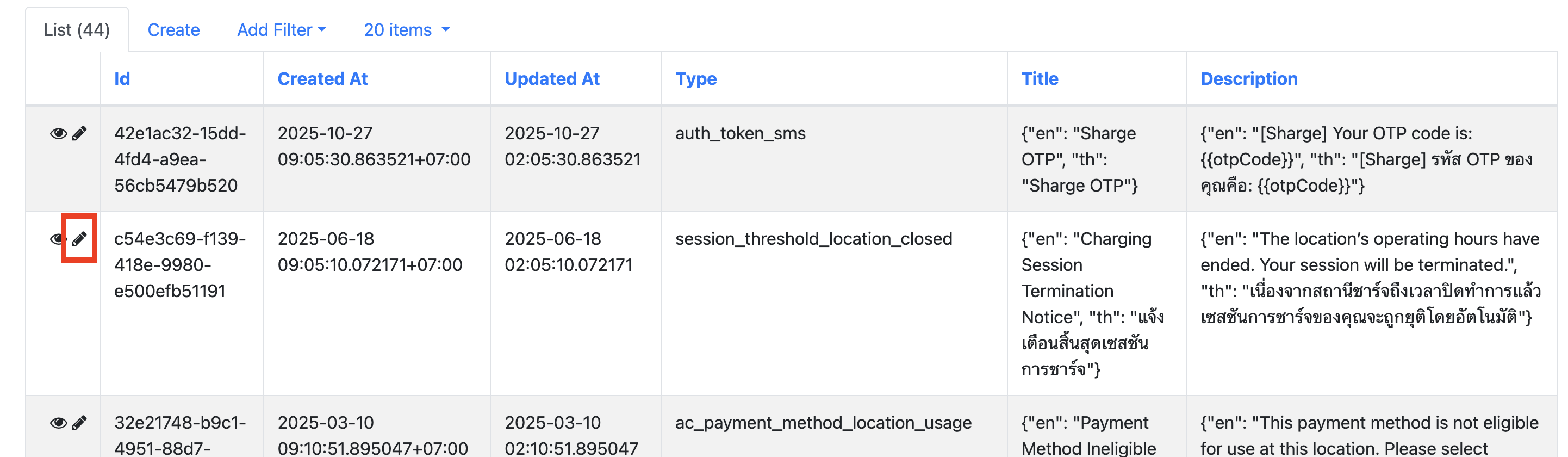 จะเป็นการจัดการเนื้อหาหรือรูปแบบข้อความที่ลูกค้าเห็น โดยเราสามารถเข้าไปแก้ไขข้อความที่ต้องการได้ ยกตัวอย่าง เช่น session_threshold_location_closed