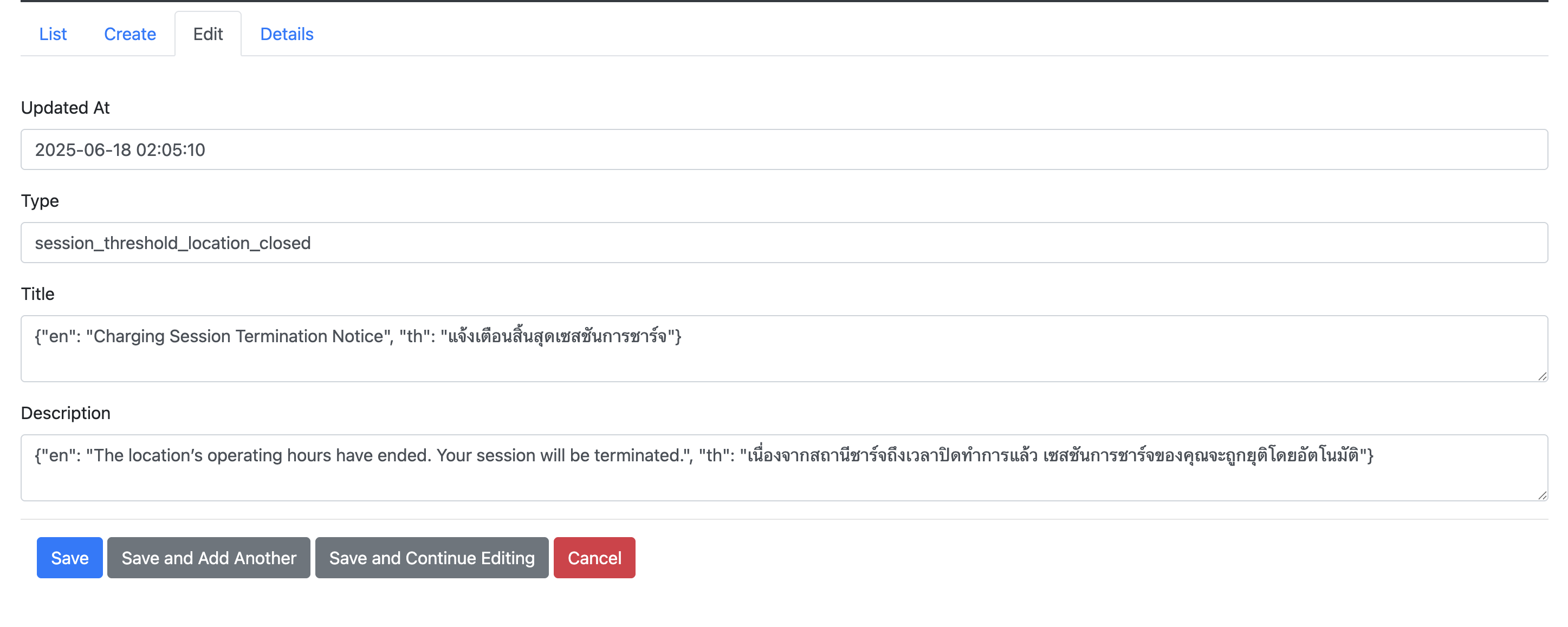 - session_threshold_location_closed จะเป็นข้อความที่แสดงก็ต่อเมื่อลูกค้าถูกหยุด Session เพราะว่าถึงเวลาปิดทำการของสถานี