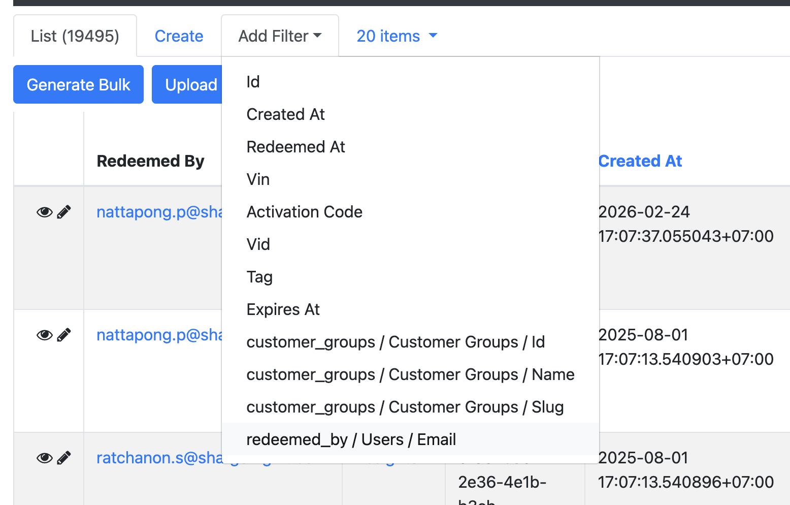 2. เช็ควันที่ลูกค้า Activate Privilege Code ในช่อง Redeemed At