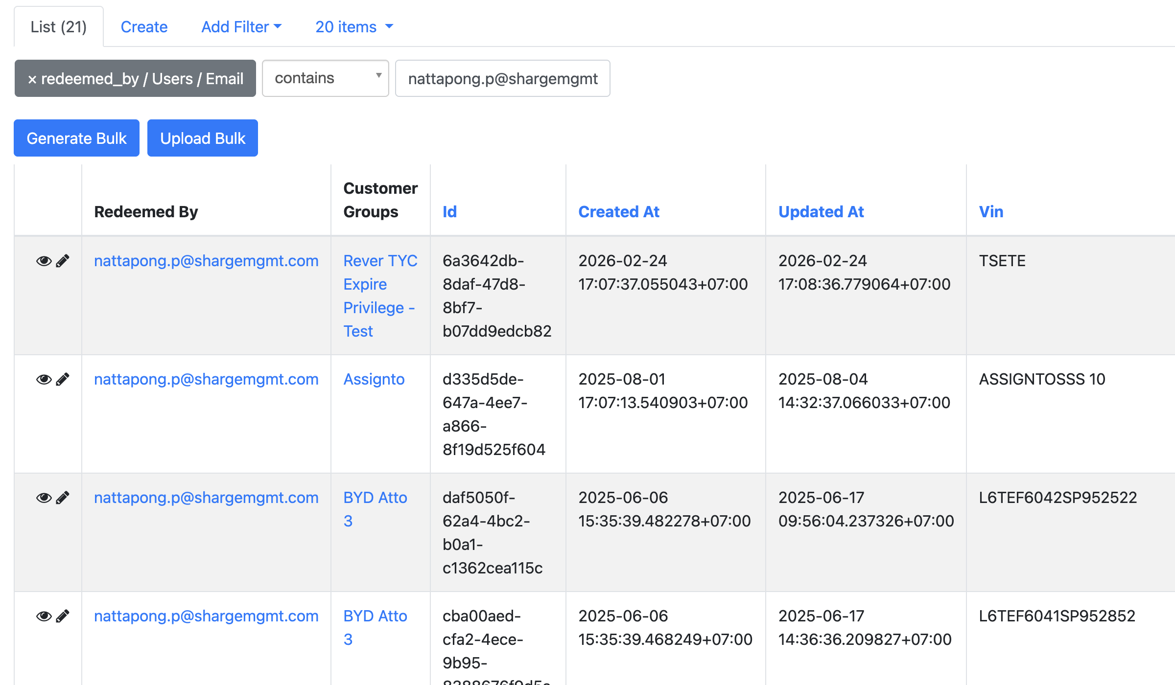 1.ค้นหาด้วย Email เพื่อหาว่า Email นี้ มีหรือได้รับ Privilege Program ไหนบ้าง